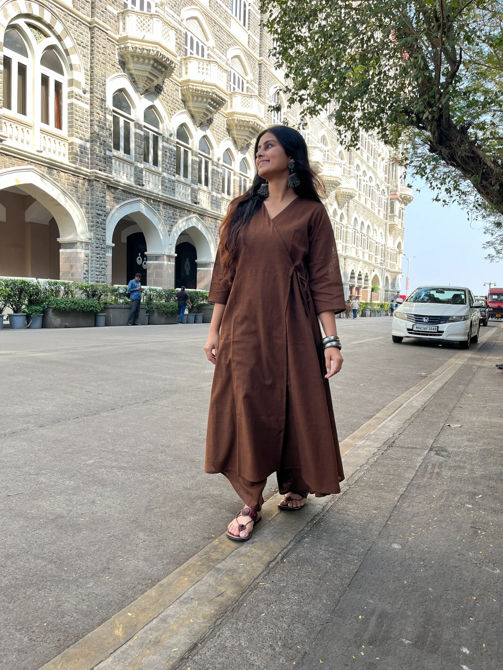 Introducing the royalty: Dark mocha brown Angarakha suit set. Crafted to redefine sophistication, this ensemble seamlessly blends tradition with contemporary flair, perfect for any occasion.