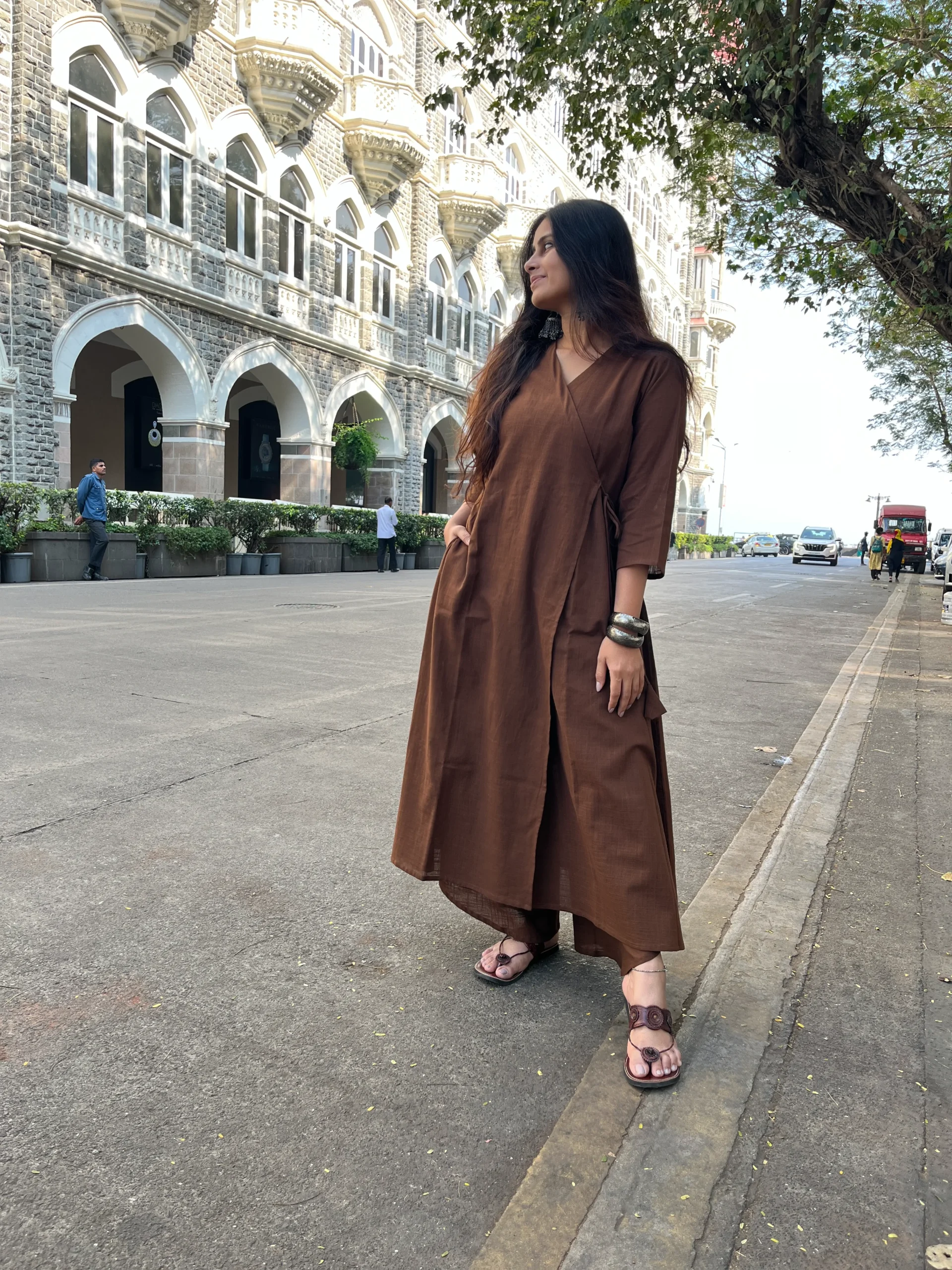 Quality fabric meets royal design – Dark brown mocha Kurta featuring a classy slit pattern made in pure cotton!