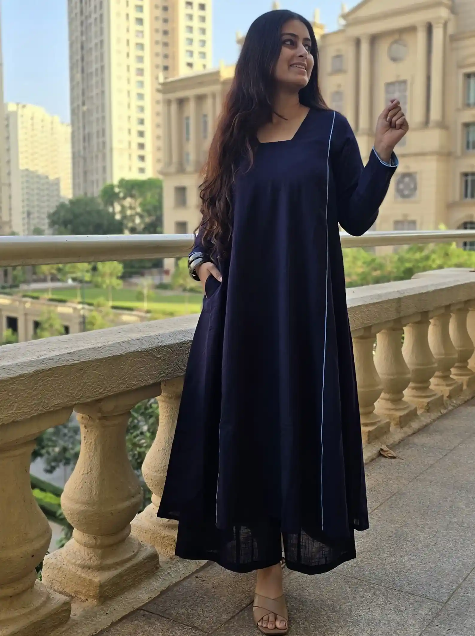 Square neck Kurta with Palazzo pants in Coffee Brown